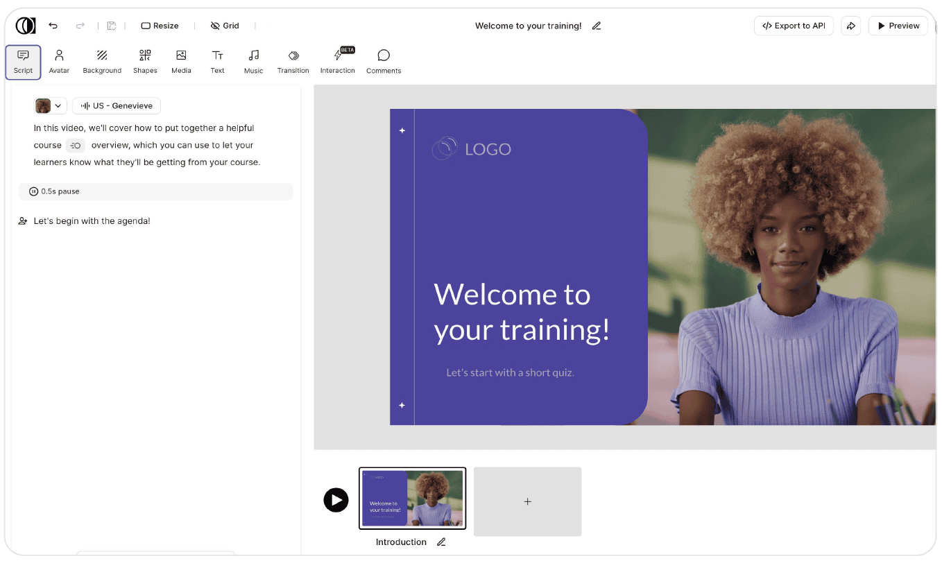 any script into a studio-quality AI video, fast, scalable, and multilingual.
